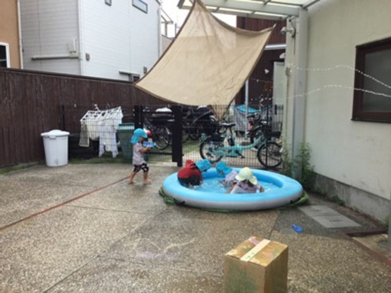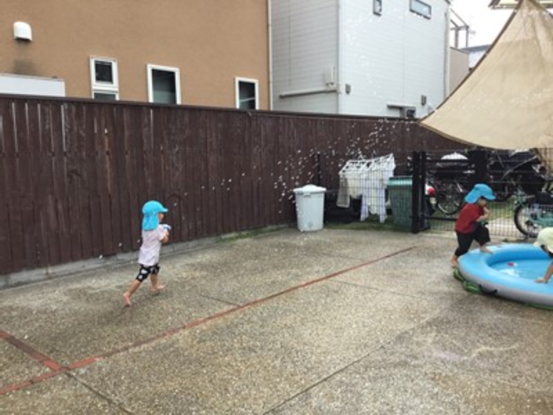 水の流れを目で追いかけて、保育者に当てようと一生懸命になっている姿は、本当に生き生きとしていましたよ。