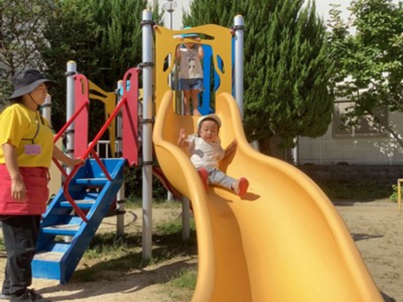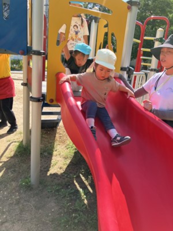 公園に着くと、さっそく元気いっぱいに走り出す子どもたち! ぶらんこをこいだり、滑り台をすべったりと、体を思いきり動かしてのびのびと遊ぶ姿が見られました。
