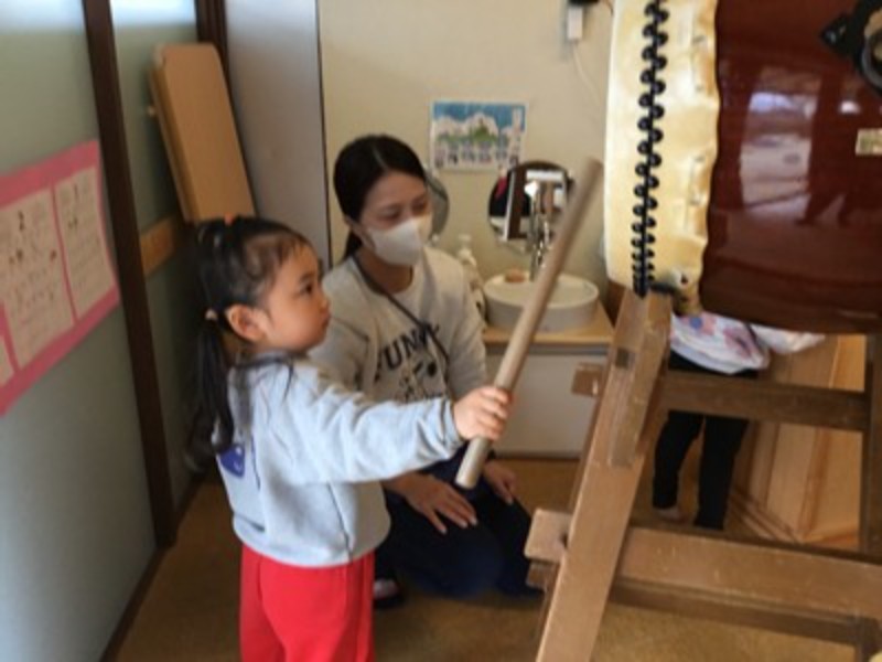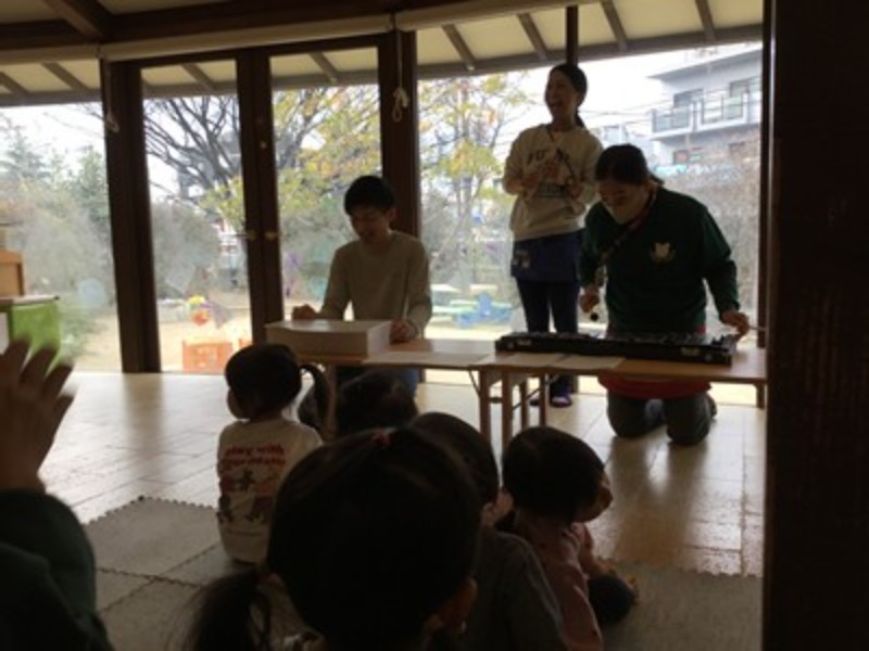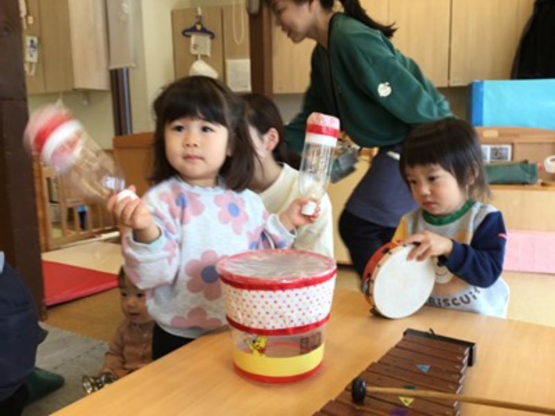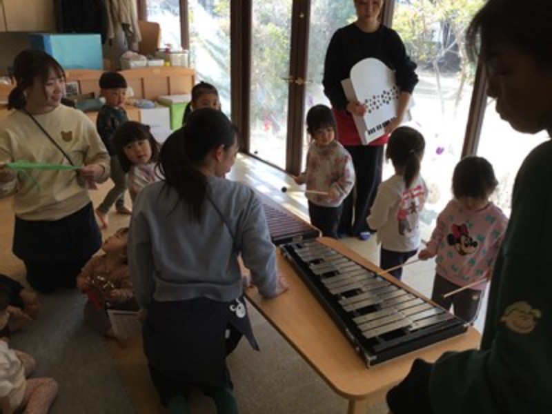 アルバム ミュージックday♬ 2026.01.13 職員による生演奏に触れる機会として「ミュージックDay」を開催しました。 演奏開始直後は、聞き慣れない大きな音に少し驚いた様子の子どもたちでしたが、次第にリズムに合わせて体を揺らしたり、知っている曲を口ずさんだりと、思い思いに楽しむ姿が見られました。 演奏会の後は、実際に楽器に触れて遊ぶ時間を設けました。和太鼓、キーボード、鉄琴、チャンチキなど、さまざまな楽器に触れ、その音色の違いを楽しんでいました。 和太鼓体験では、慣れてくると思い切りバチを振りかざし、「ドン!」と力強い音を響かせて楽しむ姿が印象的でした。 一覧へ戻る