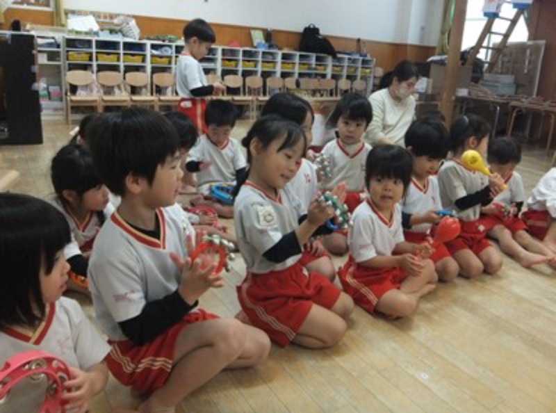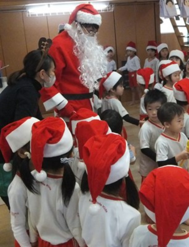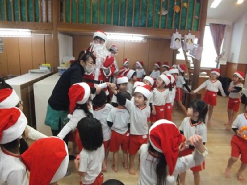 幼児クラスではクリスマス会があり、駆け付けたサンタさんと一緒に、歌を歌ったり、ゲームをしたりして楽しみました。