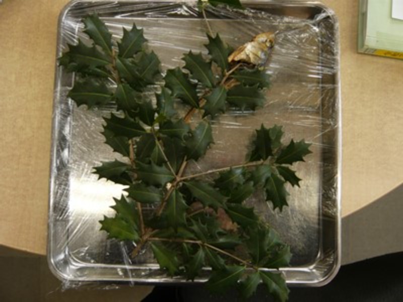 乳児クラスでは、鬼のお面を見たり、豆に見立てたボールを使い、豆まきごっこをしたりしました。鬼の顔に驚く姿も見られましたが、保育者と一緒に楽しんでいました。