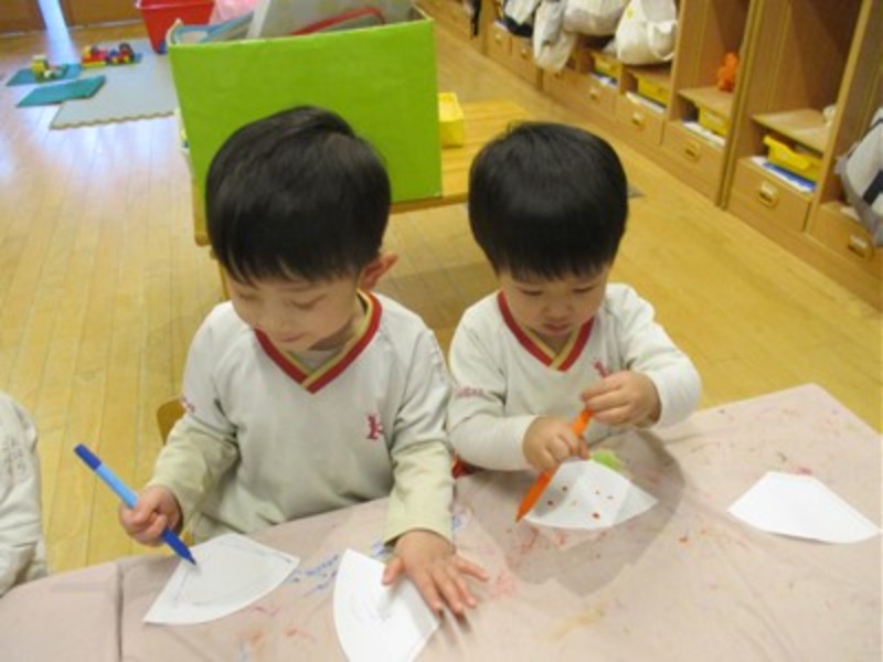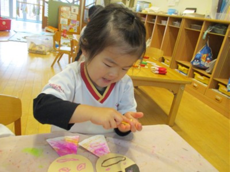 子ども達は顔を描いたり、服を飾ったりしながら、それぞれ個性あふれる素敵な作品を作る事ができました。