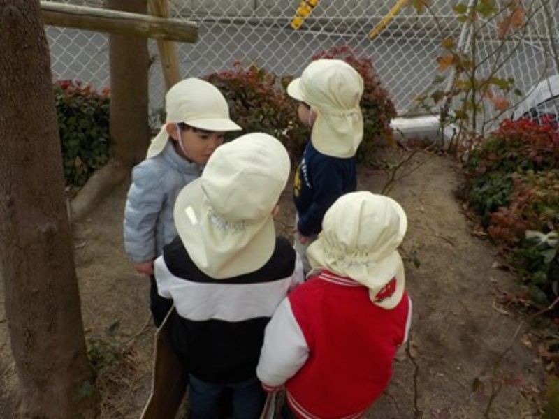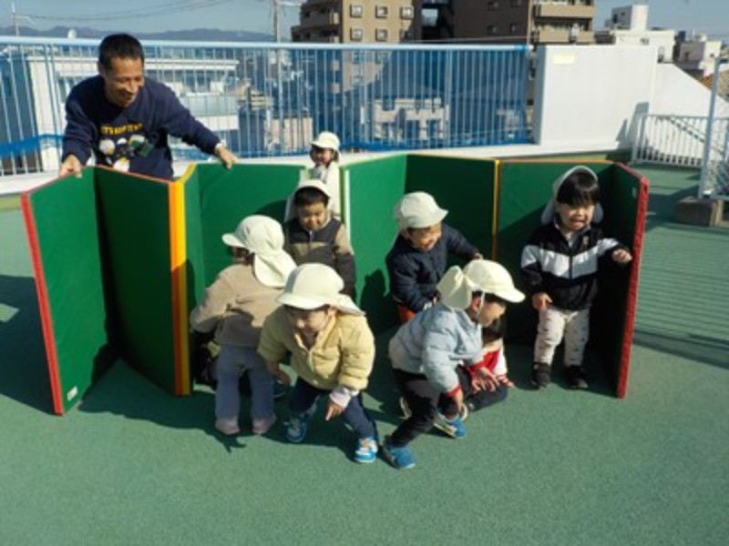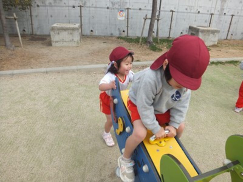 戸外遊びでは、春の暖かさを感じながら元気一杯に体を動かし、保育者と一緒にのびのびと過ごしていました。